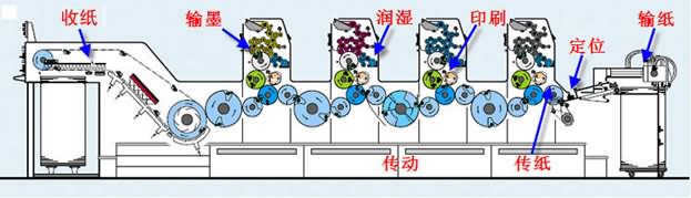 印刷方式:碳粉激光快印(图文店)、喷墨打印、丝印、凹凸印和平版胶印,其中胶印技术色彩表现力好、批量印刷成本低,被印刷厂广泛应用,下面动画是胶印机输送纸和定位纸结构原理: